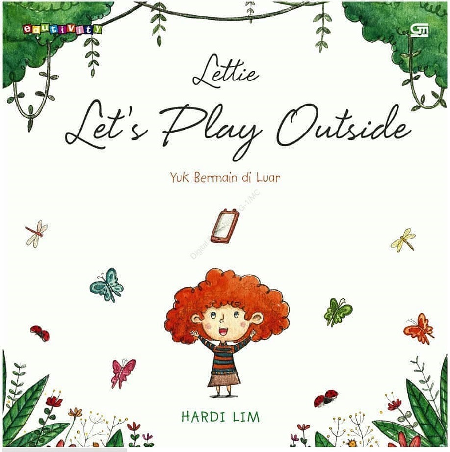 Buku bilingual ini mengajak anak-anak zaman sekarang yang seringkali terlalu asyik dengan gawainya untuk beraktivitas di luar rumah. Ada banyak hal yang dapat dilakukan di alam terbuka. Melalui tokoh Lettie, anak-anak diajak untuk menemukan petualangan seru tanpa gawai di dunia nyata.