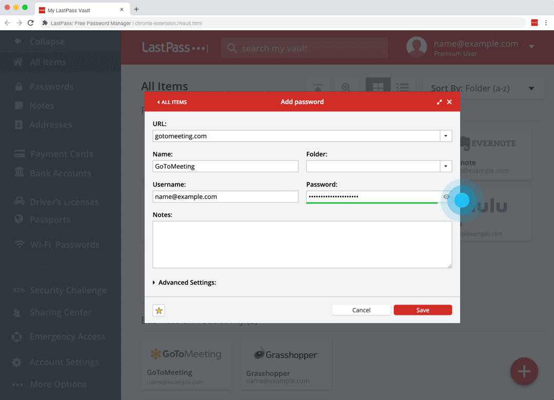 7. Klik ikon Lastpass di dalam kolom password. Klik ‘Save credentials for this site.’