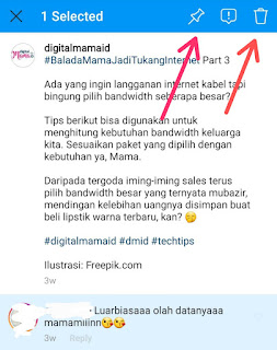 Jika ada komen yang membuat tidak nyaman, Mama bisa menghapusnya. Tekan komentar negatif tersebut, lalu ketik ikon tempat sampah yang muncul di kanan atas.