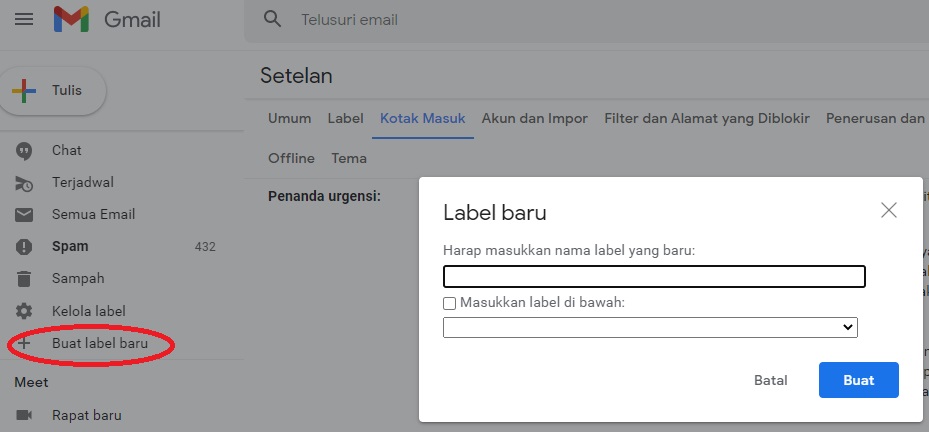 | Filter di Gmail dapat diakses dari menu Kelola Label > Filter dan Alamat yang Diblokir |
