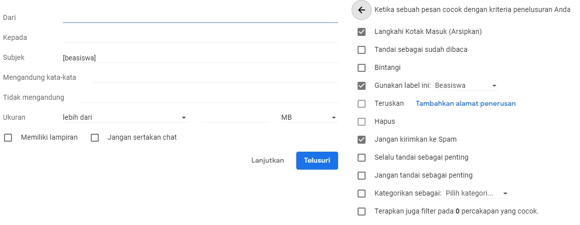 3. Filter email secara otomatis