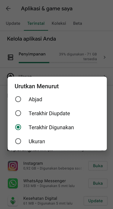 - memeriksa aplikasi mana yang sudah lama tidak kita gunakan
