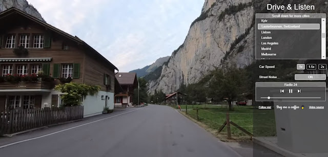 Aplikasi Drive&Listen menawarkan pengalaman berkendara di berbagai kota di penjuru dunia sambil mendengarkan radio lokal atau kebisingan kota yang sedang dijelajahi. Kita juga bisa memilih kecepatan mobil yang dikendarai sesuai kenyamanan. Kota-kota yang tersedia antara lain Amsterdam, Antalya, Barcelona, Beijing, Berlin, Havana, Lisbon, New York, dan banyak lagi lainnya.
