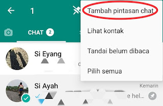 | Ketuk chat, ketuk menu di sudut kanan atas, pilih Tambah pintasan chat |