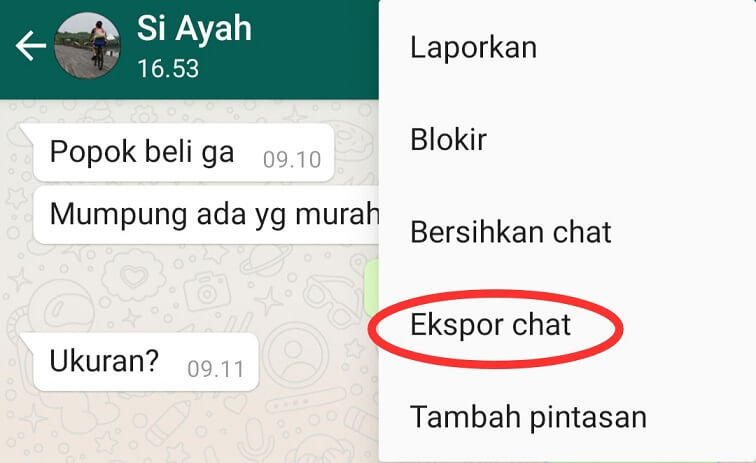 Masuk ke chat yang ingin diekspor, ketuk menu Lainnya > Ekspor chat.