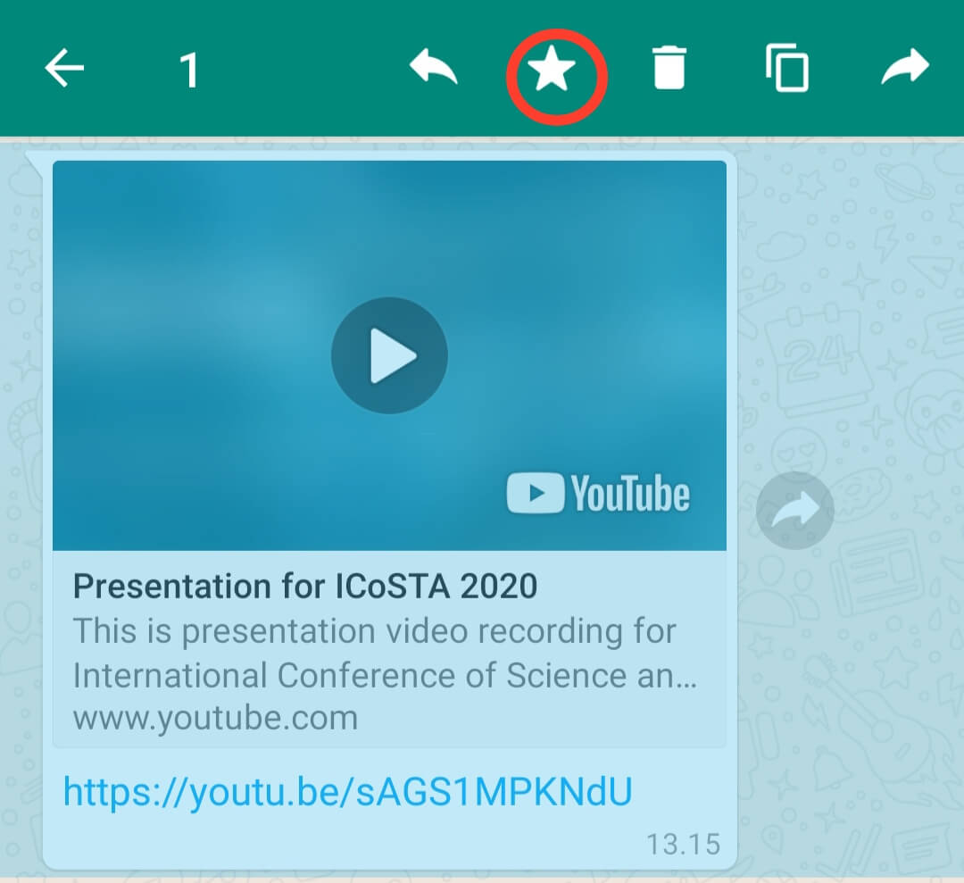 Ketuk dan tahan pesan yang ingin dibintangi lalu pilih ikon Bintang di atas.