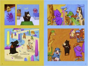 Cerita fabel yang disajikan dalam buku ini sangat seru dibacakan untuk anak-anak. Ilustrasinya penuh warna menunjukkan kesan ceria yang dipadu dengan cerita berima. Mengenalkan jenis-jenis hewan dan bunyi suara serta konsep ukuran besar, kecil, tinggi, rendah dan lain-lain. Buku ini bisa dibaca sambil melakukan aneka kegiatan aktivasi buku bersama-sama. Yuk, bantu mama beruang mencari sepeda di sini!