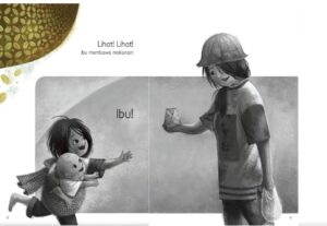 Sebagai sosok yang penyayang, mama berperan memenuhi kebutuhan penting anak sebagai penyedia makanan. Ternyata, makanan yang kita anggap sebagai kebutuhan biasa setiap hari merupakan hal mewah dan menakjubkan yang jarang didapati oleh orang lain. Buku Lihat! Lihat! ini dapat menjadi pengantar diskusi bersama si kecil mengenai nilai-nilai kehidupan: tentang kebahagiaan, rasa syukur serta harapan dan impian. Cerita penuh makna yang tetap disajikan khas anak-anak ini juga bisa memantik empati si kecil. Paduan ilustrasi hitam putih dan penuh warna ini menjadikan pembaca hanyut dalam imajinasi ceritanya. Kisah yang agak bikin mata berair ini bisa dibaca di sini ya, Mama!