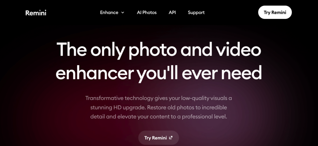Remini adalah aplikasi untuk memperbaiki dan memulihkan foto atau video menggunakan teknologi AI. Aplikasi ini dikenal karena kemampuannya memulihkan foto dengan kualitas rendah menjadi HD.