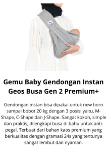 10. Gendongan (Gemu Baby Gendongan Instan Geos Busa Gen 2 Premium+)