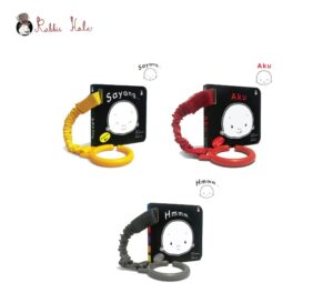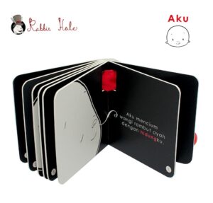 Mama bisa memilih buku high contrast terbitan Rabbit Hole yang terdiri dari tiga buah buku tentang pengenalan diri ukuran 9×9 cm bahan board book. Buku pertama berjudul Sayang berisi tentang pengenalan anggota keluarga yang menyayangi bayi sepenuh hati dan apa adanya. Sebuah pondasi untuk membangun kepercayaan. Buku kedua berjudul Aku merupakan bentuk pengenalan diri mengetahui anggota tubuh. Diawali dengan eksplorasi hal yang konkret yaitu, anggota tubuh anak. Setelah anak memahami hal yang konkret, barulah ia lebih mudah memahami hal yang abstrak seperti pada buku ketiga yaitu emosinya.