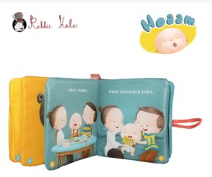 Soft book Hoaam bercerita tentang rutinitas sehari-hari seorang anak, dari bangun tidur sampai tidur malam. Berisi delapan halaman sesuai dengan rentang perhatian bayi yang masih pendek. Gambar disajikan fokus pada satu objek sehingga sesuai dengan otak bayi yang masih berkembang dan baru dapat menangkap sesuatu dengan sederhana. Hoaam mengenalkan konsep siang dan malam sesuai dengan cerita aktivitas si anak. Pemilihan warna dominan yang digunakan yaitu seperti kuning untuk siang dan biru untuk malam. Selain itu, soft book yang dibuat oleh seorang psikolog ini juga mengenalkan tentang konsep rutinitas dan kemandirian. Direkomendasikan untuk bayi usia 0-3 tahun ya, Mama! Bisa pesan di sini, lho!