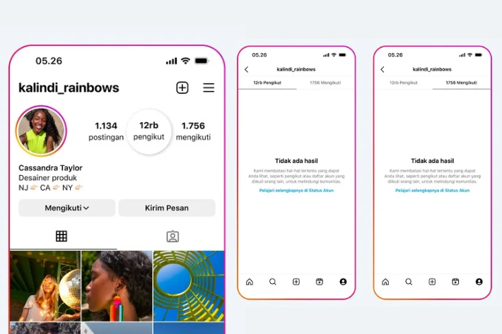 Sehingga, akun-akun yang dicurigai sebagai akun penipu tidak dapat melihat pengikut dan apa yang mereka ikuti, bahkan foto yang menandai mereka serta akun lain yang menandai foto mereka. Jadi, Meta secara langsung mempersempit ruang gerak pelaku.