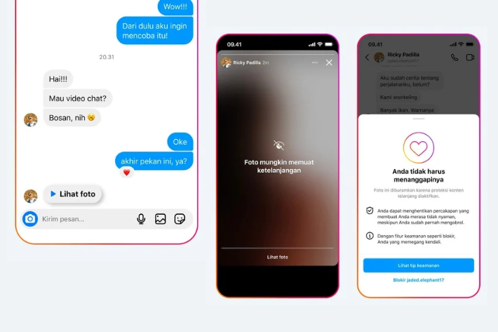 Lagi-lagi, Meta bereaksi dengan melakukan proteksi terhadap konten tanpa busana melalui DM. Jadi, foto atau video yang dikirimkan oleh pelaku tidak akan langsung terlihat jelas. Justru konten tersebut disensor sehingga gambar terlihat buram dan memberikan pesan pada mereka bahwa konten tersebut berpotensi memuat konten tanpa busana. Dengan begitu, pengguna remaja tidak langsung terpapar konten tersebut dan dapat memblokir serta melaporkan akun tersebut untuk agar hal tersebut tak terjadi lagi di kemudian hari.