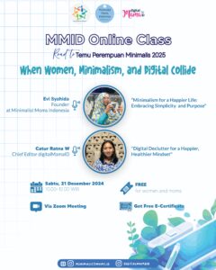 Gaya hidup minimalis menawarkan solusi untuk mengatasi kebiasaan konsumtif. Meski istilah “minimalisme” populer di era modern, konsep ini telah lama dikenal. Di era modern, minimalisme membantu mengurangi tekanan hidup dan kecemasan. Minimalisme menjadi bahasan dalam webinar bertajuk Minimalism for Happier Life: Embracing Simplicity and Purpose yang digelar oleh Minimalist Mom Indonesia (MMID) dan digitalMamaID pada 21 Desember 2024. Founder MMID Evi Syahida atau Visya membagikan pengalamannya menjalani gaya hidup minimalis sejak 2020. Menurut Visya, gaya hidup minimalis adalah seni menjalani hidup sederhana dan secukupnya dengan rasa syukur dan kesadaran penuh.