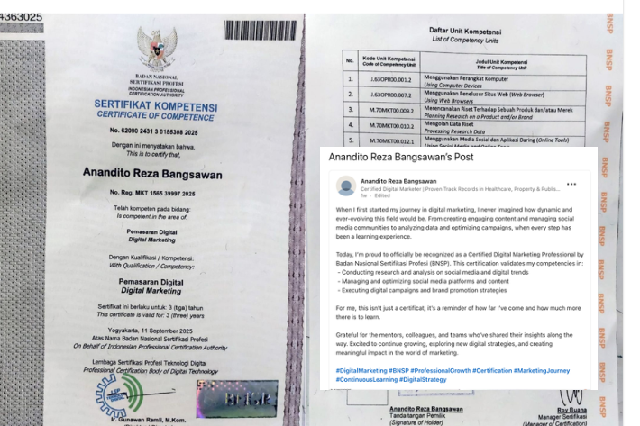 Di Indonesia sendiri, pemerintah sudah memiliki badan khusus yang menangani sertifikasi profesi yakni Badan Nasional Sertifikasi Profesi (BNSP). Konten kreator termasuk di dalamnya, namun aturan ini belum diwajibkan secara resmi.